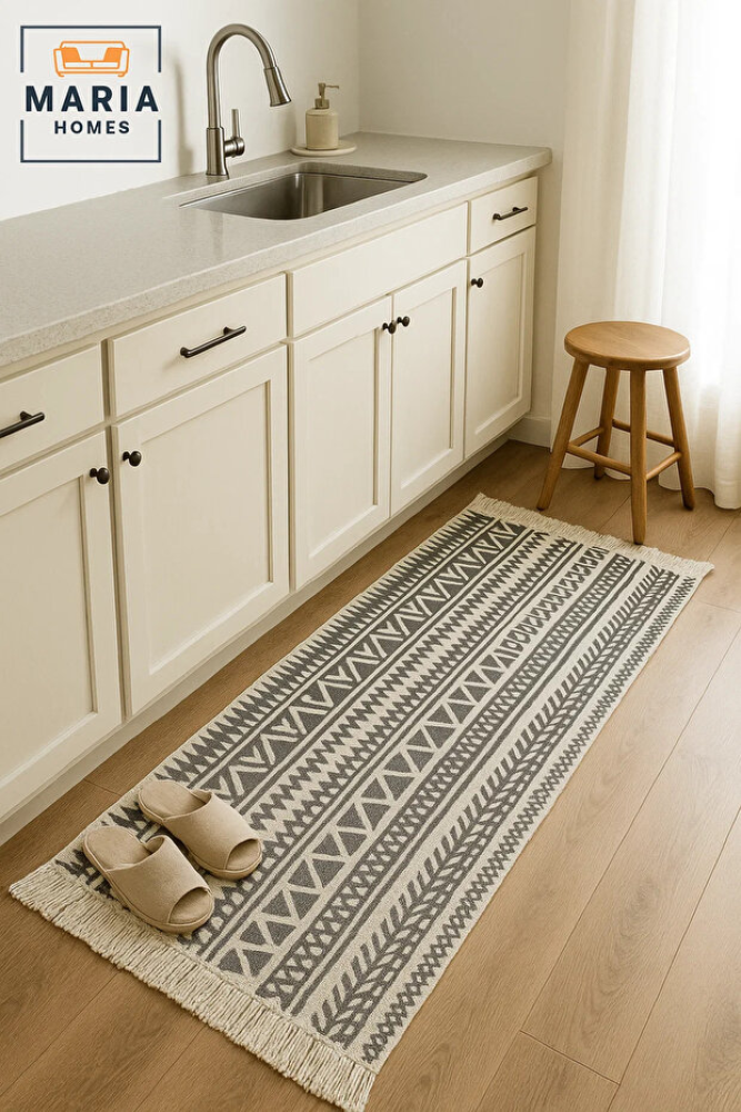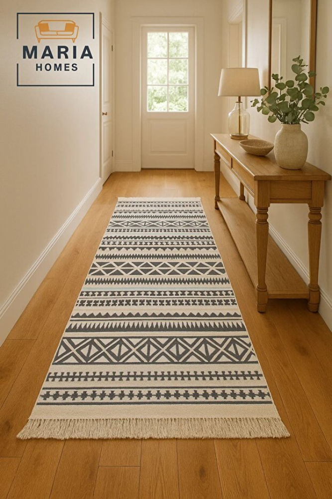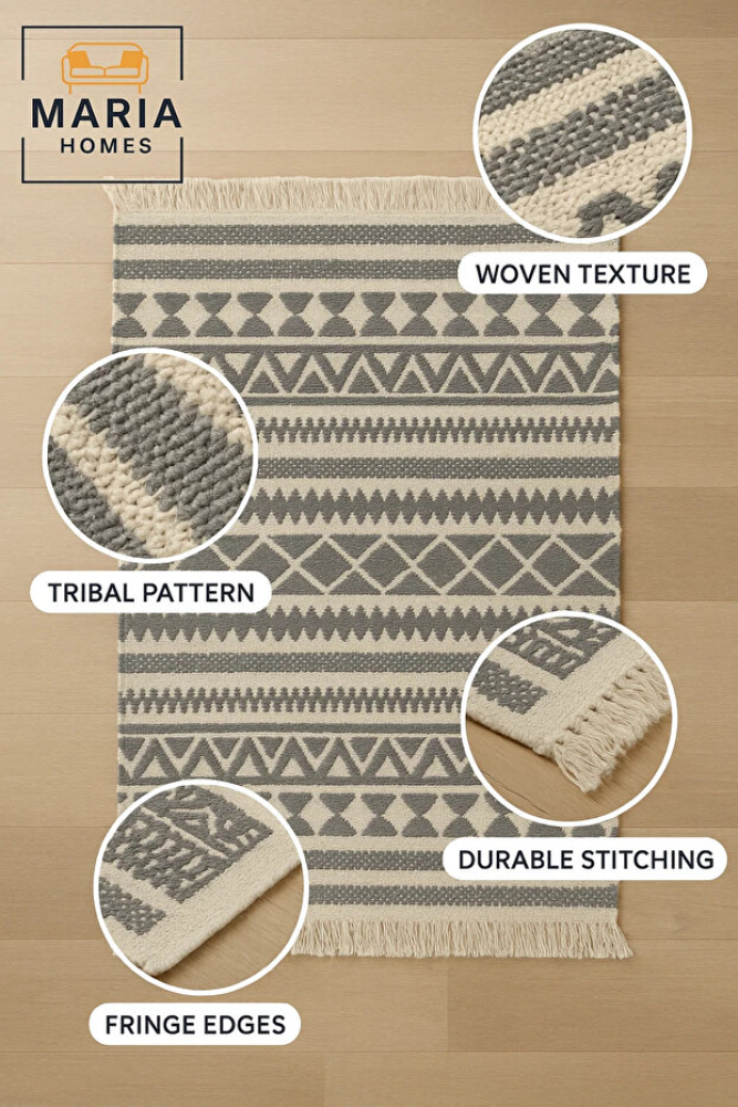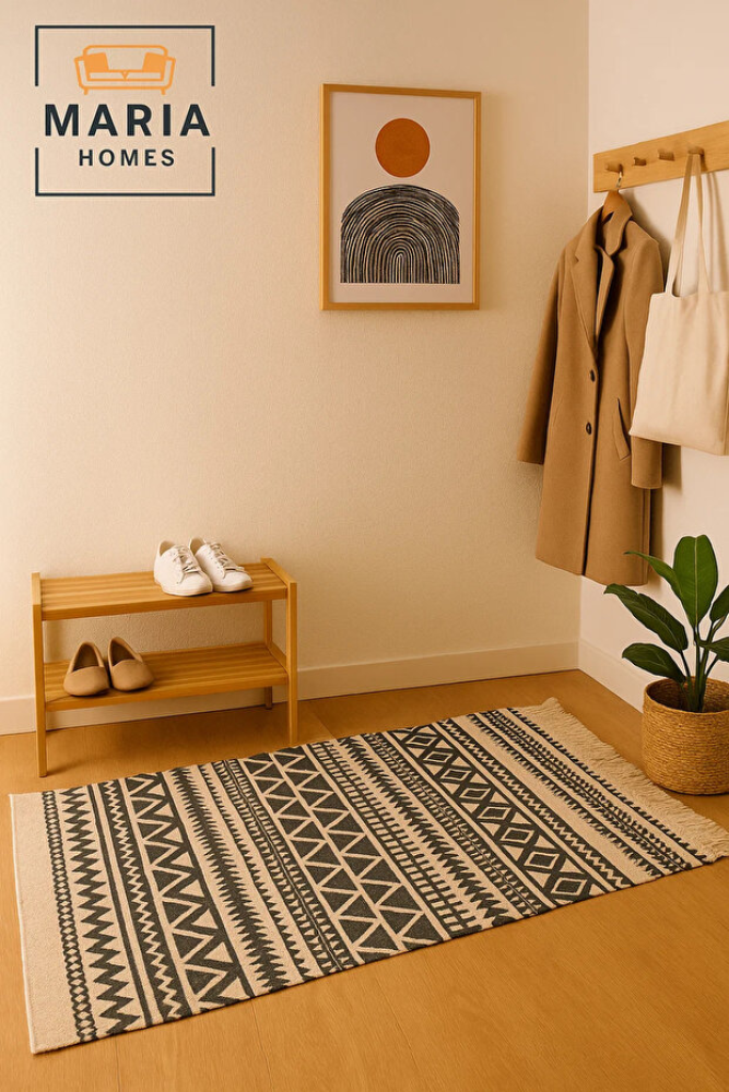 • تصميم سجادة بني بوهيمي فريد يضيف لمسة فنية وجمالية للمكان